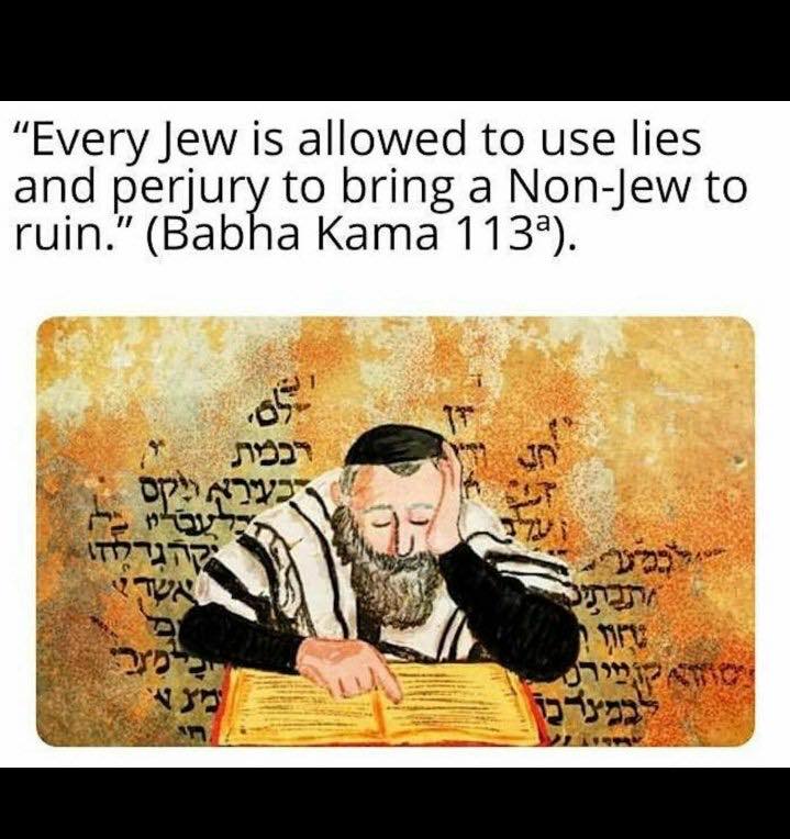 64] “Every Jew is allowed to use lies and perjury to bring a Non-Jew to ruin.” (Babha Kama 113ª).