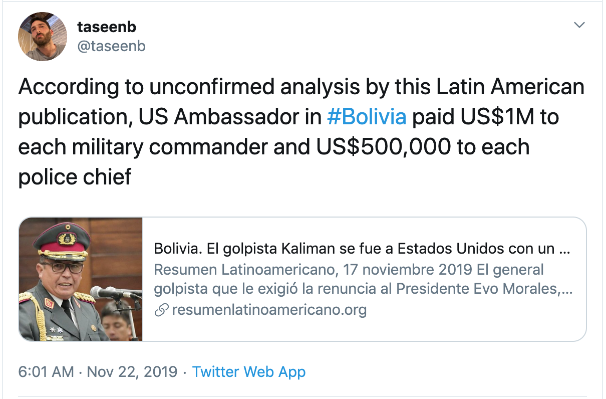 The above is extracted from “Bolivia: Anatomy of a Coup