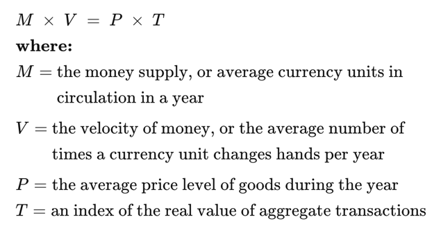 The Phillips curve is not the only error when it comes to understanding the effects of monetary inflation. Finding that the relationship between the expansion of money and the effect on its purchasing power varied, the mathematical economists introduced a variable factor to ensure the equation describing the money relationship with prices always balanced. The monetary equation is as follows: