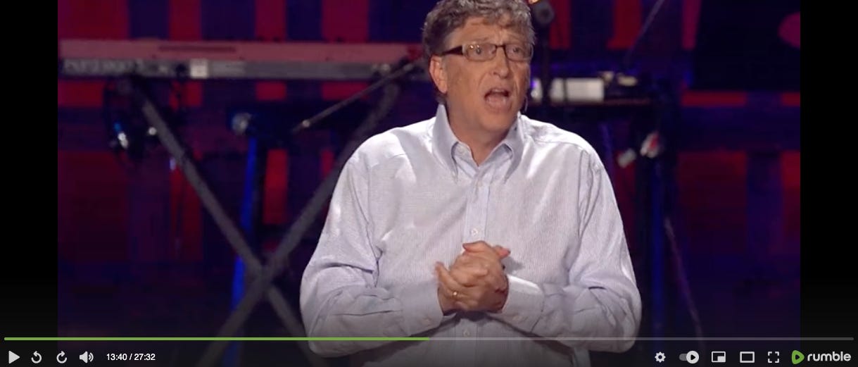 The segment with Gates making that “humanitarian” suggestion, as well as the whole talk, was on YouTube, which disappeared it early in the “COVID crisis.” So here’s Gates’ whole performance, still accessible on Rumble:
