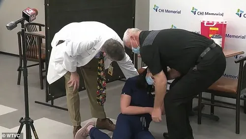 I could not help but be reminded of the numerous people who collapsed while talking about the benefits of the Covid vaccine they just took.