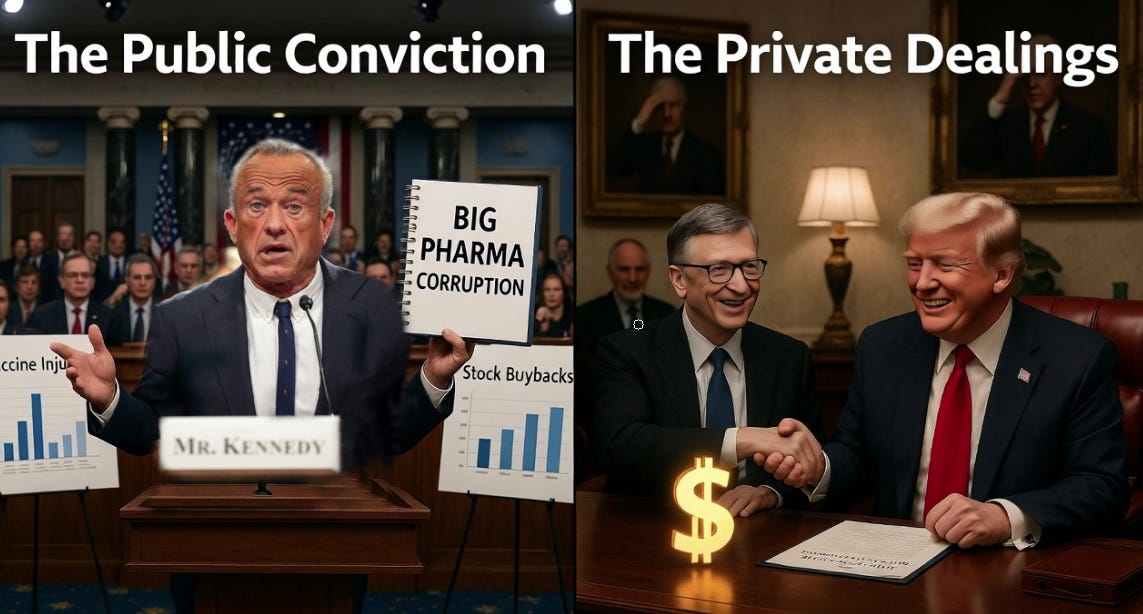 RFK Jr. cannot succeed if his boss keeps hobnobbing with the enemy. The MAHA movement is built on putting the well-being of American citizens before the profits of multinational Big Pharma corporations. Every handshake with Bourla, every closed-door meeting with Gates, is a betrayal of that core principle.