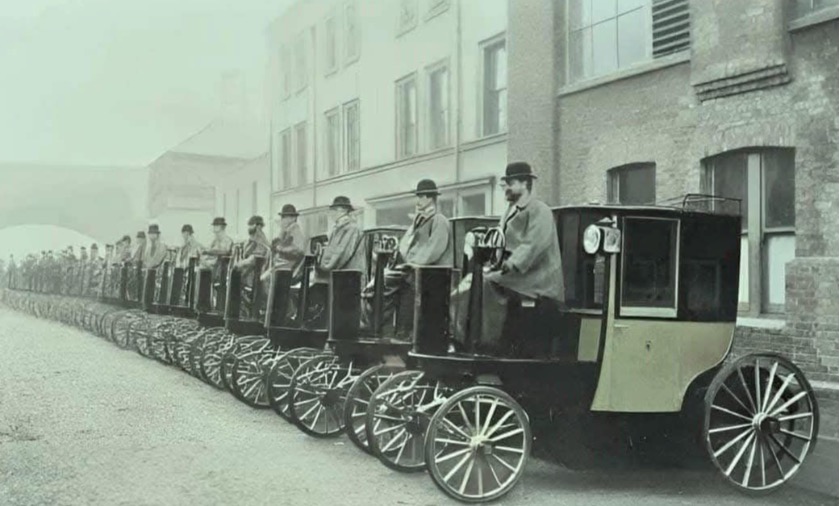 The above photo is of the Hummingbird Taxis that first debuted in London, 1897. The electric taxis were built by the London Electrical Cab Company that recognized the need for a cleaner, more efficient alternative to traditional modes of transport. The quiet nature of these cabs made them appealing to passengers, offering a smoother and more pleasant ride through the busy streets of London, where noise and pollution were constant issues.