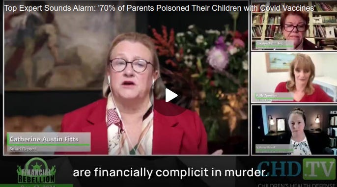 “What happens when 70% of the parents in America discover that they have systematically poisoned their children [with ‘vaccines’]?” Fitts asserts.