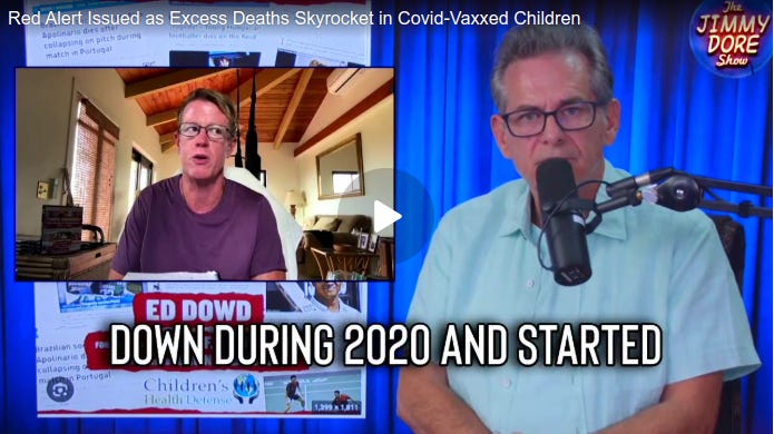 During a new interview on “The Jimmy Dore Show,” Dowd produced shocking data showing that excess child deaths are still surging higher, long after the Covid mRNA “vaccines” were first released almost four years ago.
