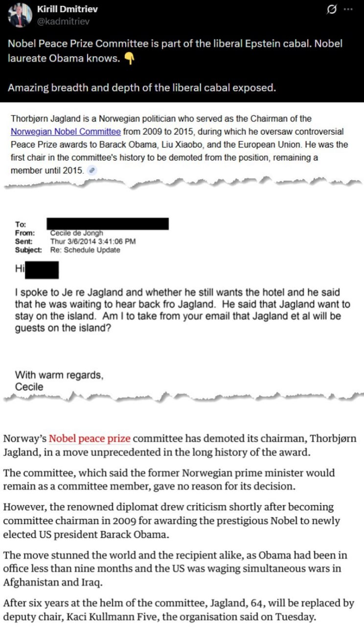 In Norway, Thorbjorn Jagland, the country’s premier from 1996 to 1997 and former chair of the Nobel Committee, is also being investigated by police for his involvement with Epstein.