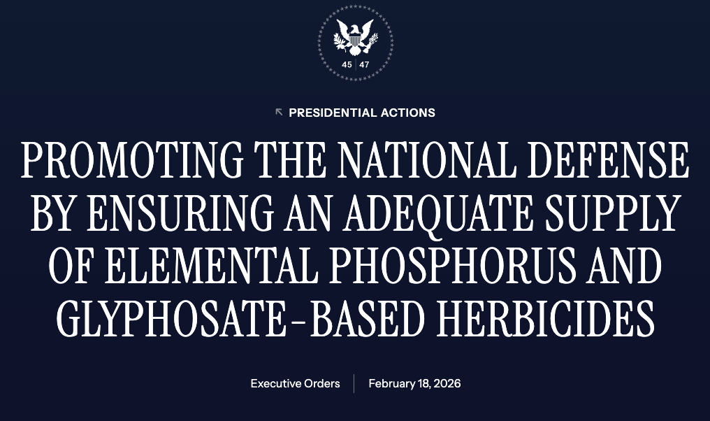 In a sweeping executive order, President Trump invoked the Defense Production Act to secure domestic production of elemental phosphorus and glyphosate-based herbicides, formally elevating them to national defense priorities.