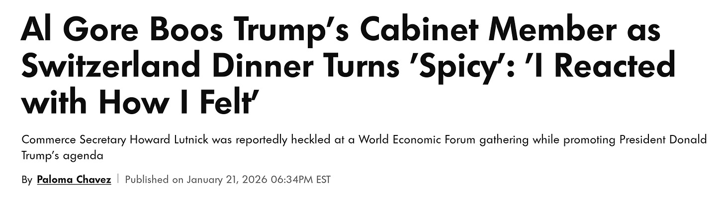 The truth in Davos can be found in the details. Climate guru Al Gore wasn’t given the stage for a presentation. Instead he could only childishly ‘boooo’ Howard Lutnick during a dinner. He has lost his power, status and prominent voice in Davos.