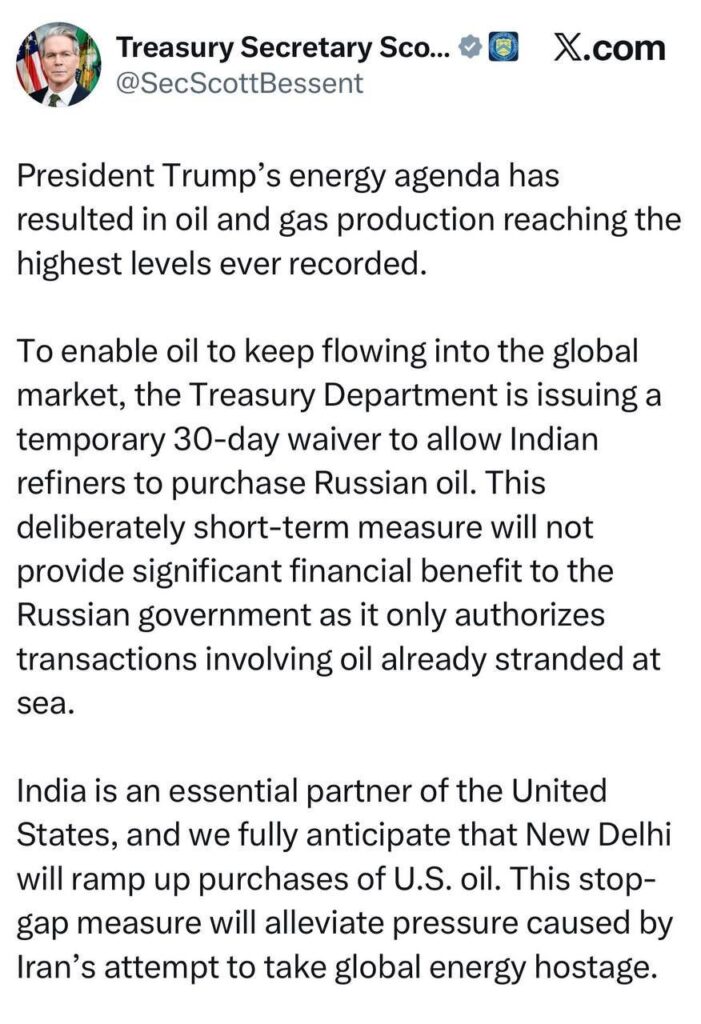 https://www.opindia.com/2026/03/us-boasts-about-un-sanctioning-its-own-sanction-on-russian-oil-admits-that-india-buying-russian-crude-will-keep-global-oil-prices-stabilised/