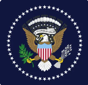 I was noticing the Presidential flag on a speech last night. The phrase written in Latin is,