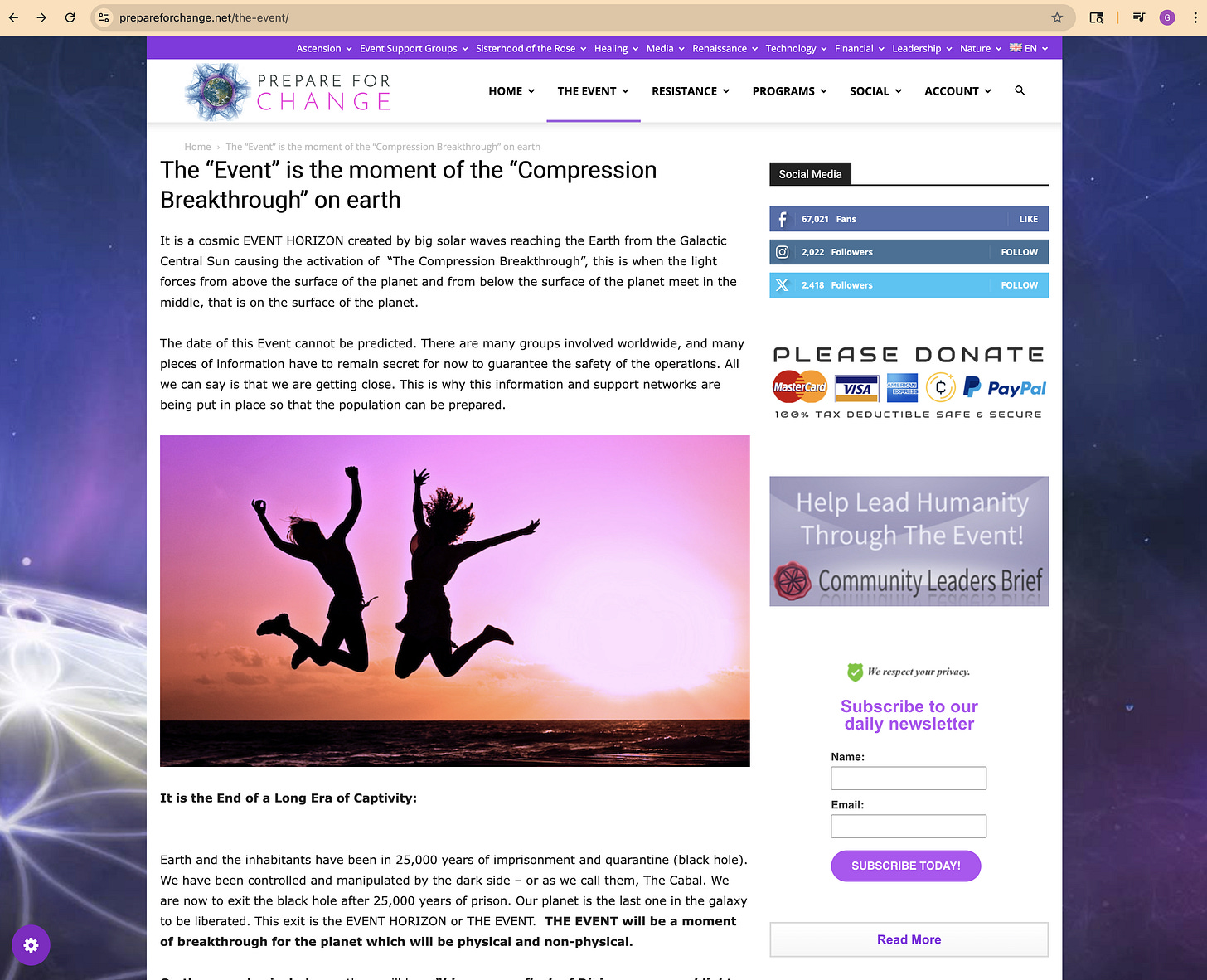 From 2016 to November 2023, I served on the board of Prepare for Change (prepareforchange.net) as Media Chair and Humanitarian Projects Committee member. Prepare for Change is a global 501 (c)(3) nonprofit association focused on disclosure, consciousness, and preparation for systemic transition. At its peak it reached a community of over 500,000 members across multiple continents.