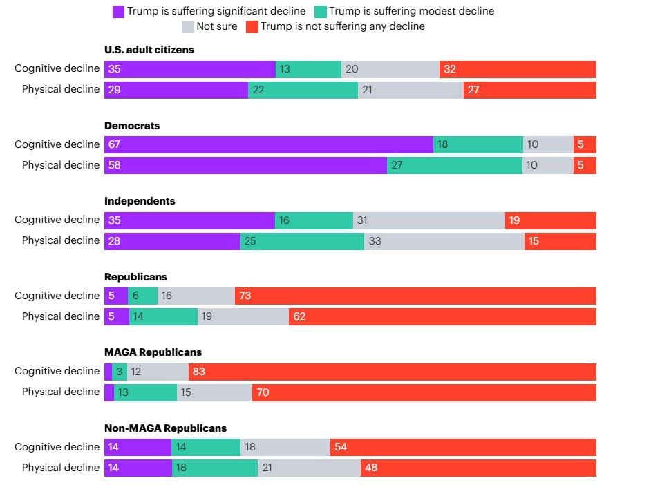 Now, only a third of Americans consider “Trump” mentally healthy, while 48% of Americans believe he suffers from cognitive disorders to some extent.