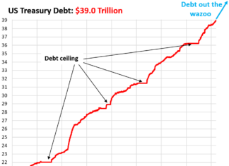 By Wolf Richter, The US Treasury debt – all Treasury securities outstanding – jumped by another $1 trillion in five months, and by $2 trillion in...